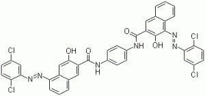 InChI: InChI = 1 / C40H24Cl4N6O4 / c41-23-9-15-31 (43) 33 (19-23) 47-49-35-27-7-3-1-5-21 (27) 17-29 ( 37 (35) 51) 39 (53) 45-25-11-13-26 (14-12-25) 46-40 (54) 30-18-22-6-2-4-8-28 (22) 36 (38 (30) 52) 50-48-34-20-24 (42) 10-16-32 (34) 44 / h1-20,51-52H, (H, 45,53) (H, 46, 54)